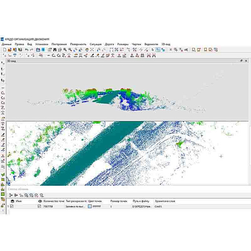 Современные технологии и оборудование позволяют выполнять сбор данных в кратчайшие сроки и с высоким качеством, т.к. практически исключаются ошибки, обусловленные пресловутым человеческим фактором. Одна из таких технологий - сбор данных по существующей дороге с помощью мобильного лазерного сканирования. Последующая обработка облака точек и сопутствующих геопозиционированных фотоизображений в программе КРЕДО 3D СКАН позволяет выделить рельеф, кромки и бровки, линейную дорожную разметку, сигнальные столбики, дорожные ограждения.